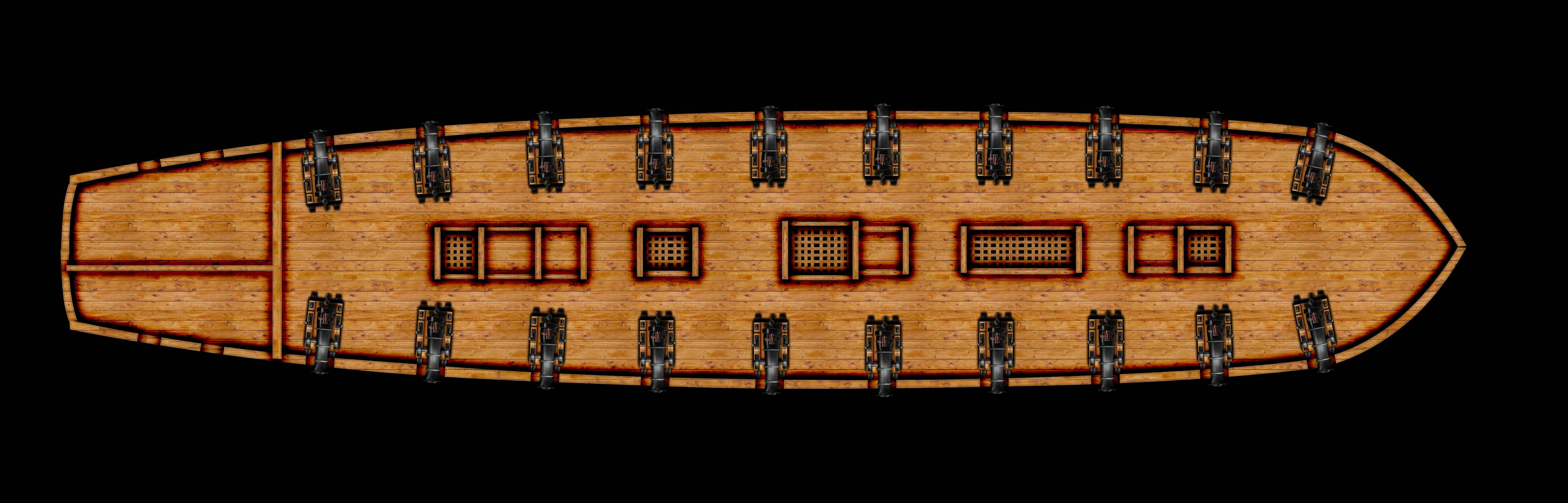 | Free Cargo Space: Complications: Weapons: Broadside Damage: Health: | 4 None 20 small cannons (10 each side) 100 17 Health Dice |