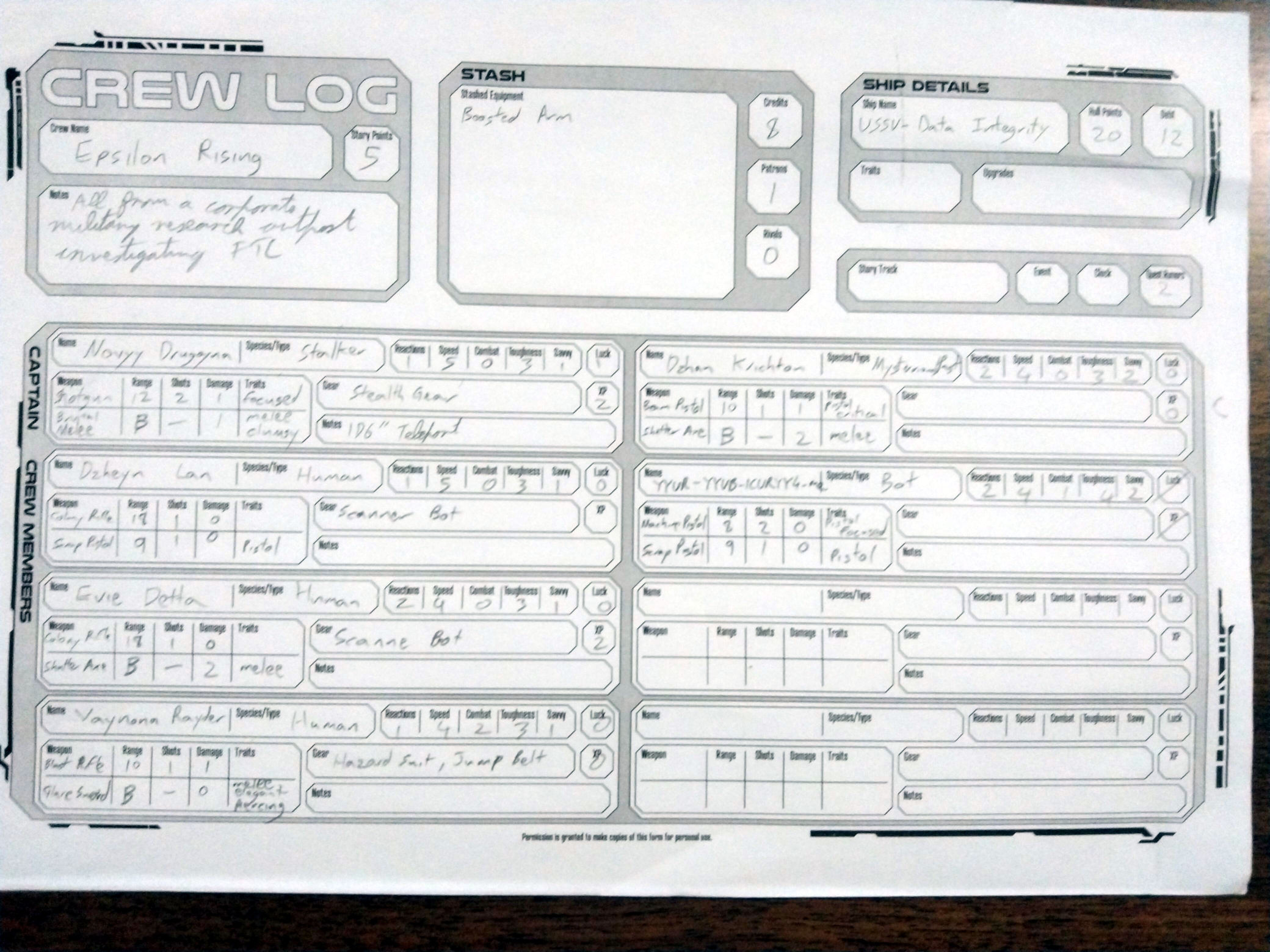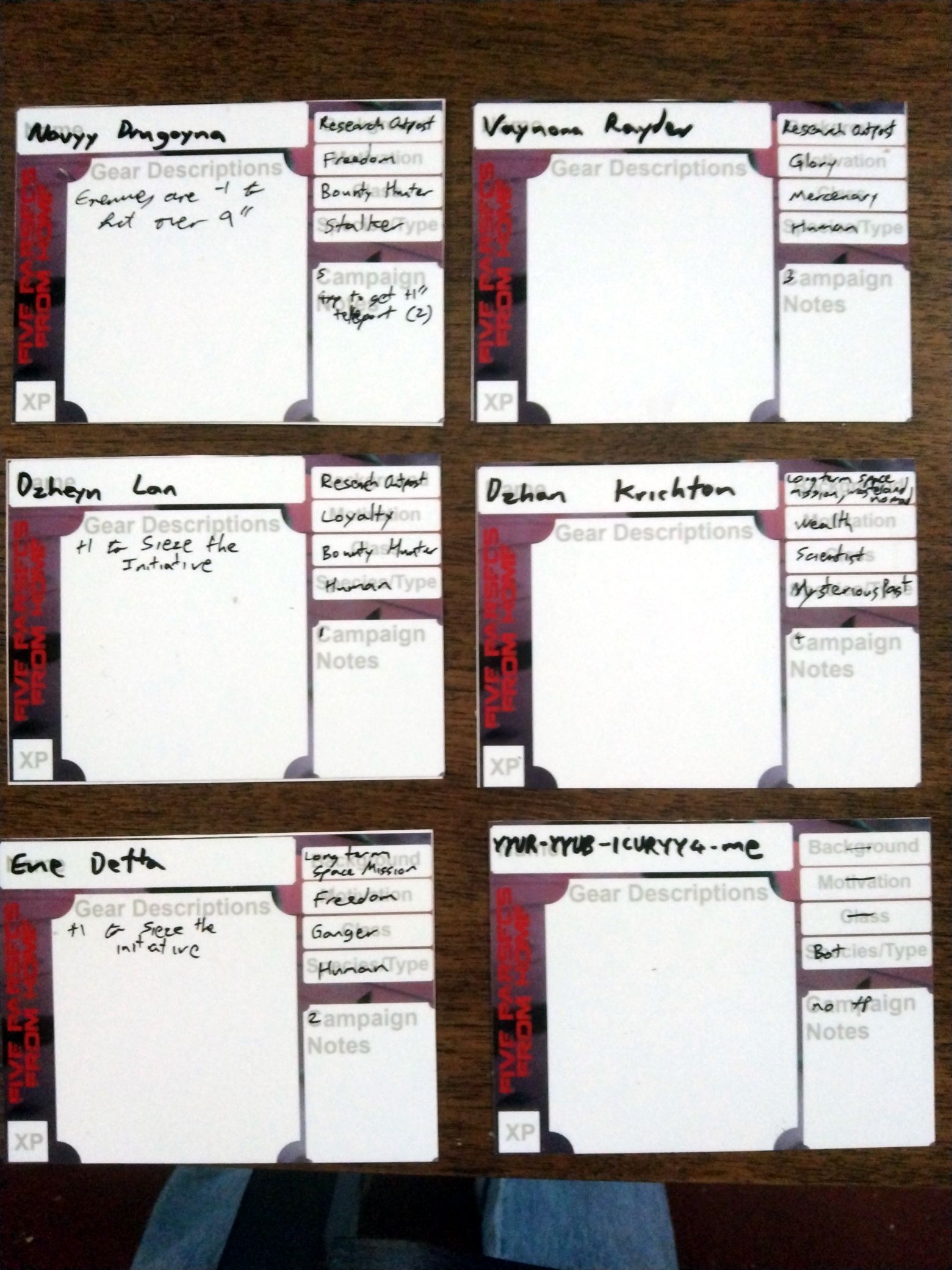 - Experience and Character Upgrades: Dzheyn: 5xp, Others (except the bot): 4xp